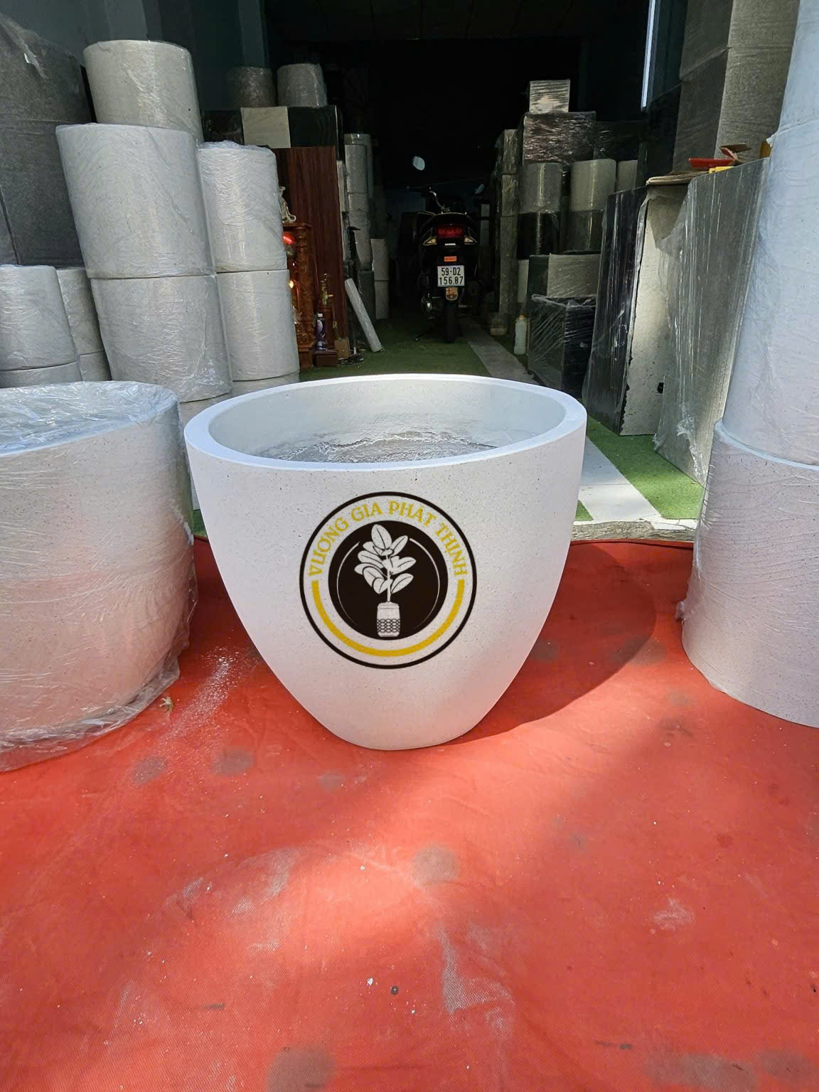 Chậu được kết hợp từ nguyên liệu xi măng, đá granite và gồm sợi Caro bên trong thành chậu để có sự kết dính chặt chẽ và độ bền chắc chắn. với vẻ ngoài trơn,bóng loáng,giúp chậu có tính nghệ thuật và thẩm mỹ cao.