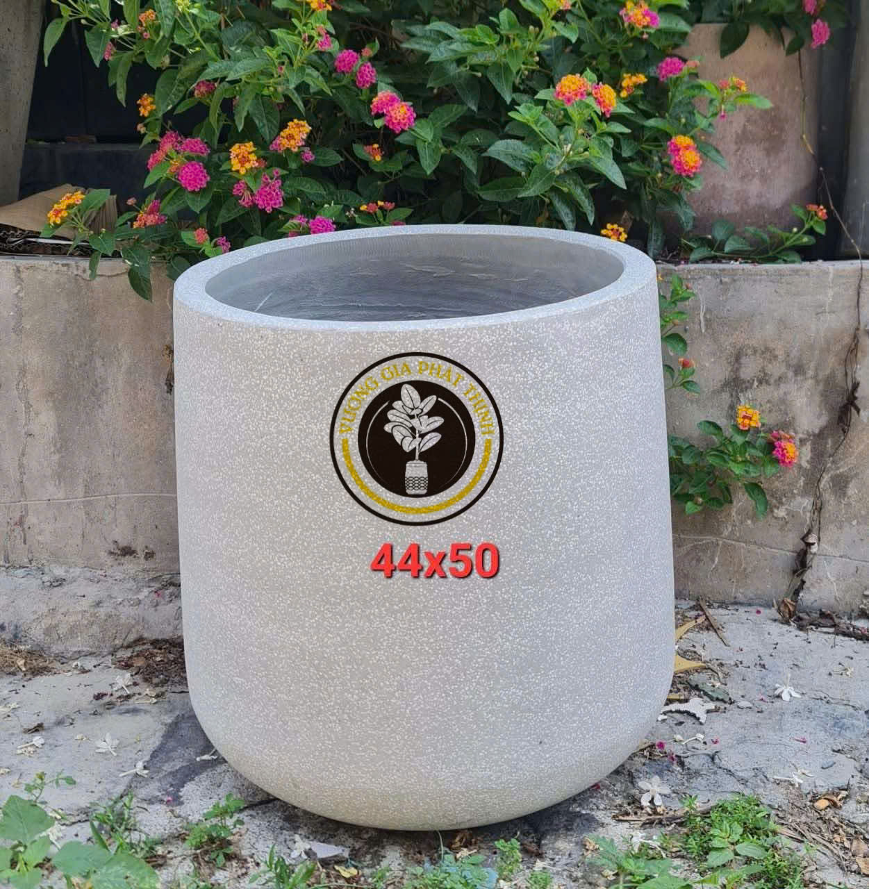 Chậu được kết hợp từ nguyên liệu xi măng, đá granite và gồm sợi Caro bên trong thành chậu để có sự kết dính chặt chẽ và độ bền chắc chắn,với vẻ ngoài trơn,bóng loáng,giúp chậu có tính nghệ thuật và thẩm mỹ cao.