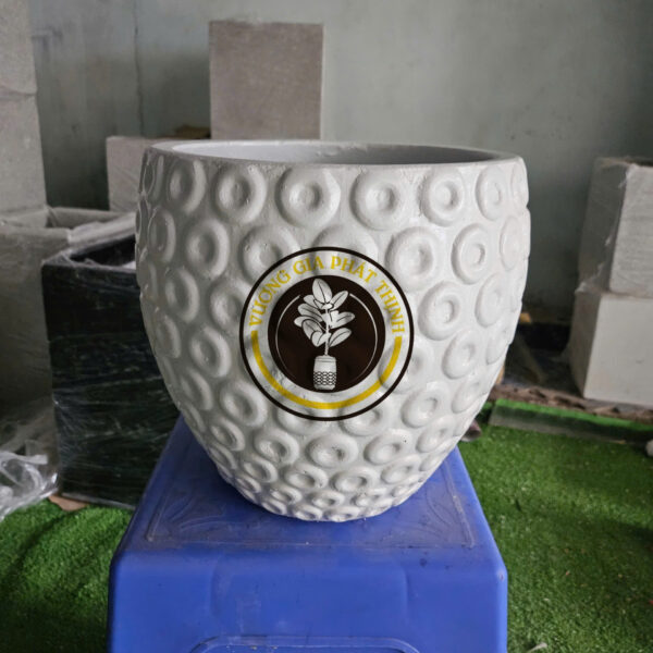 Chậu Xi Măng Nhẹ Tròn Viền Sơn được sản xuất từ nguyên vật liệu xi măng , Sợi Caro kiên cố giúp cho kết dính lại với nhau và chắn chắn.